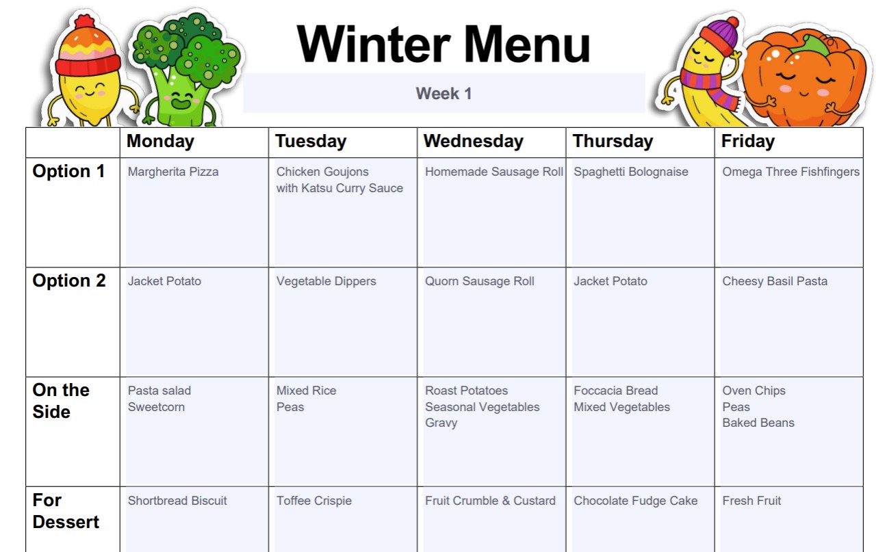 We encourage parents and carers to engage with us about school meals. Your feedback helps us continually improve our menu and meet the evolving needs of our children. We also share menus and information about special events or themed meal days through our website and newsletters.