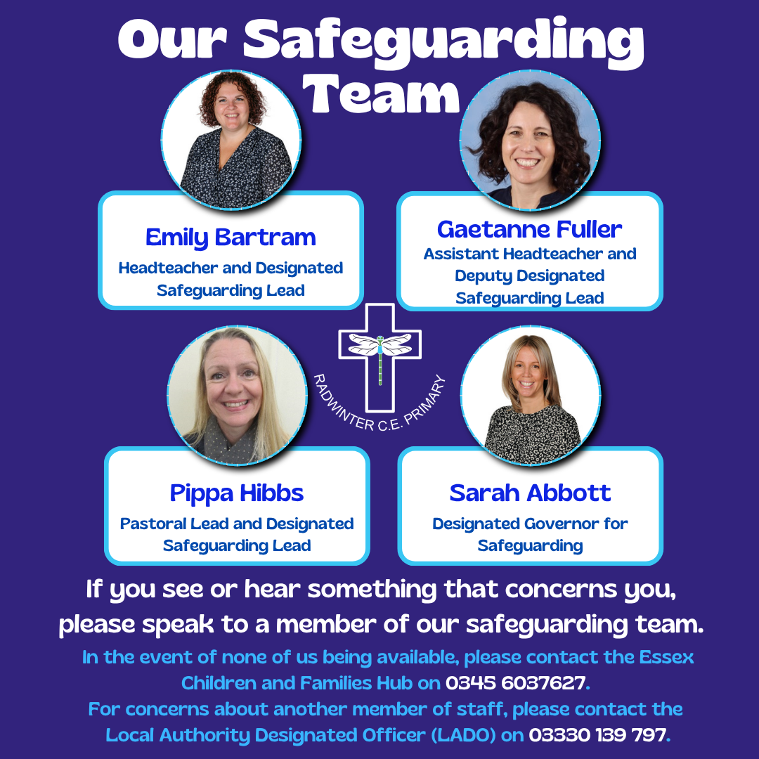 At Radwinter CofE (VA) Primary School, safeguarding is not just a policy but a lived commitment, deeply rooted in our Christian values of love, kindness, and respect. We strive to ensure that every child experiences life in all its fullness in a safe, caring community where they can grow, learn, and flourish.